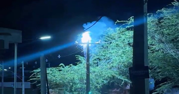 Um vídeo que circula nas redes sociais,mostra o momento exato em que acontece um curto-circuito em um poste localizado no Bairro Oliveira (Rua da Lagoa) próximo a praça.