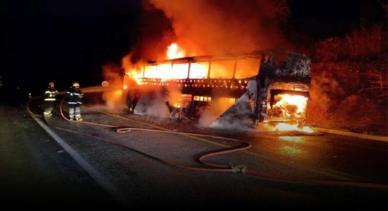 BRASIL: Ônibus que saiu de SP e seguia para Bahia pega fogo no estado de MG.