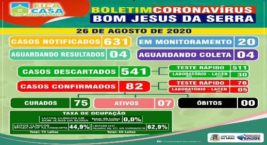BOM JESUS DA SERRA: Confira o Boletim Epidemiológico atualizado.