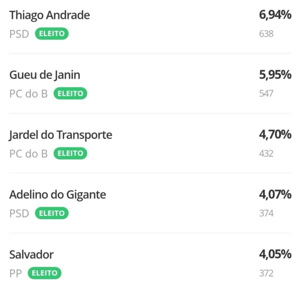 O candidato derrotou Lucas de Aete, que ficou em segundo lugar com 43,74% (3.977 votos).