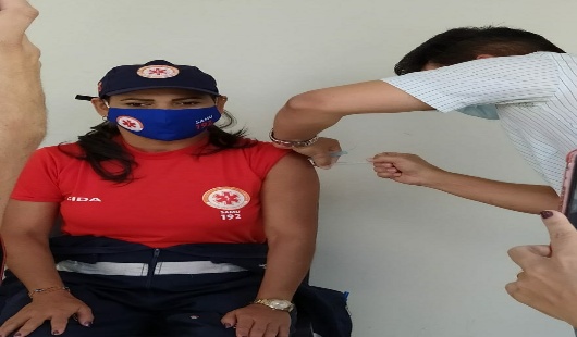 A enfermeira Ciolides freire (Cida) , de 33 anos, tornou-se hoje (19) foi a primeira pessoa a ser vacinada contra a Covid-19 no município, minutos após a chegada do lote na Vigilância Epidemiológica Municipal, os lotes foras destribuidos em todo o país após ser autorizada o uso emergencial das vacinas CoronaVac, do laboratório chinês Sinovac, e Oxford-AstraZeneca pela ANVISA.