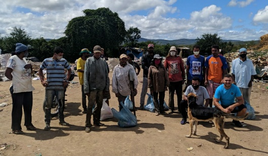 POÇÕES: Jovem Mateus Moreira entrega alimentos arrecadados para famílias que trabalham no Lixão Municipal.