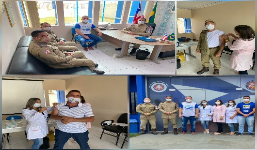 POÇÕES: Policiais Militares da 79ª CIPM recebem a primeira dose da vacina contra o COVID-19.