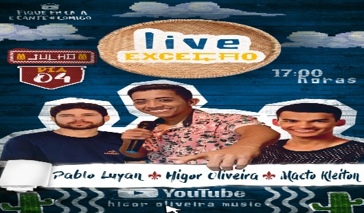 MÚSICA: Vem aí dia 04 de Julho “Live Exceção” com Pablo Luyan, Higor Oliveira e Macto Kleiton.