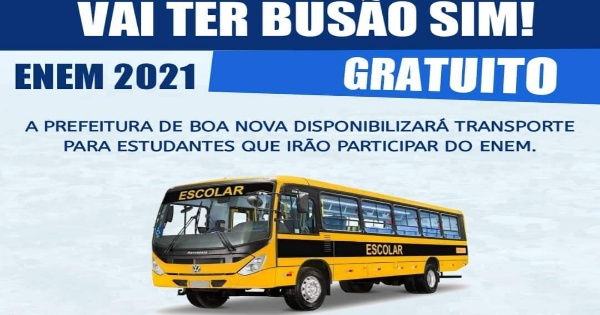 BOA NOVA: Prefeitura disponibilizará ônibus para os alunos que irão realizar a prova do Enem em Poções; Fiquem atentos aos horários