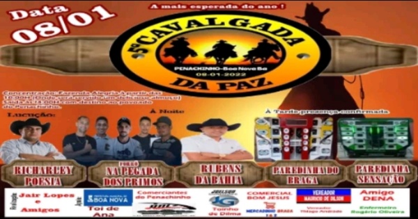 A comissão organizadora da  5ª Cavalgada da Paz divulgou na manhã dessa quarta-feira (15), as atrações que irão se apresentar no Povoado do Penachinho no dia 08 de janeiro.