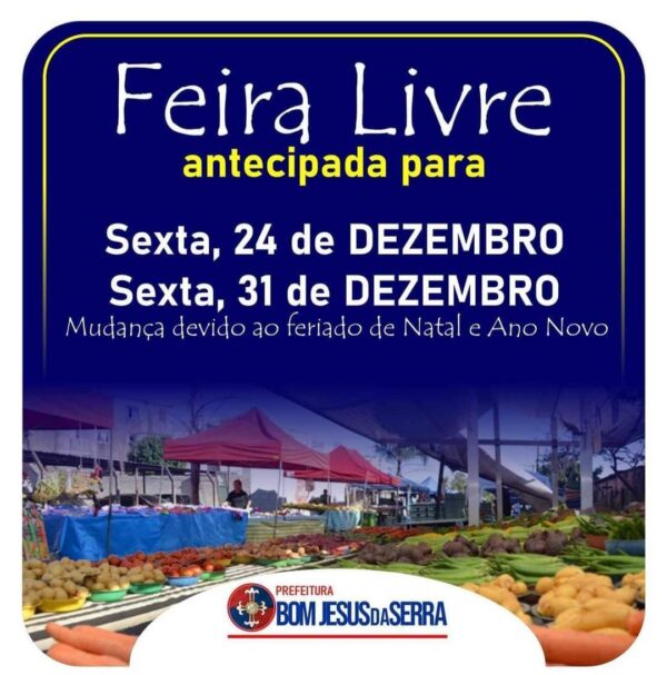 BOM JESUS DA SERRA: Feira Livre é antecipada devido aos feriados e acontecerá na sexta-feira.