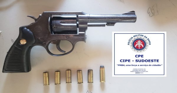 Com ele foram encontrados, revolver Cal. 38 especial, marca Taurus com numeração suprimida, 05 cartuchos deflagrados e 01 intacto e 01 papelote de substância análoga a cocaína.