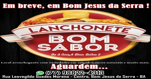 BOM JESUS DA SERRA: Está chegando na cidade a ‘Lanchonete Bom Sabor’ variedades em salgados, sucos naturais e muito mais, aguardem…