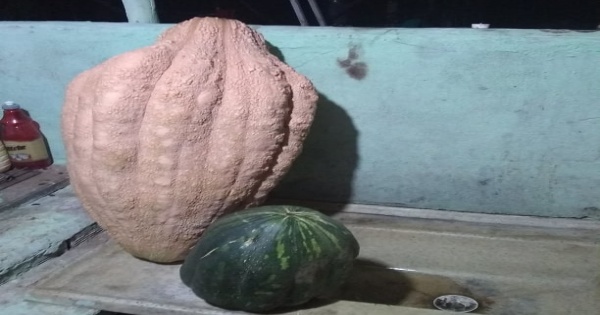 O comunicador Omar Santos colheu uma abóbora gigante no Sítio Sonho de Ícaro, propriedade rural que fica localizada na região da Laranjeira, zona rural de Mirante. Segundo Omar, a fruta chamou a atenção pelo tamanho e peso quando comparada a outras abóboras. A abóbora tem uma altura média de 80 cm e pesa cerca de 15kg. Nesta segunda-feira (11), Omar irá pesar o jerimum para confirmar o peso.