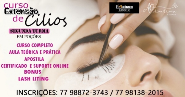 Estão abertas as inscrições da segunda turma para o Curso de Extensão de Cílios no Maicon Studio, na cidade de Poções.