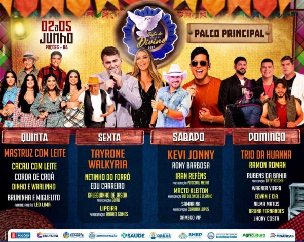 POÇÕES: Confira a programação com os artistas que irão se apresentar no Palco Principal da Festa do Divino.