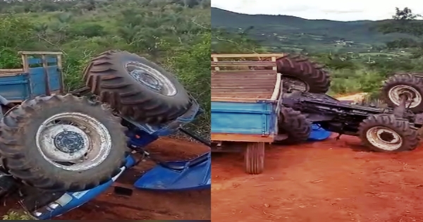Segundo informações, foi registrado um acidente envolvendo um trator jerico na descida de uma ladeira na região do Segredo, zona rural de Bom Jesus da Serra.
