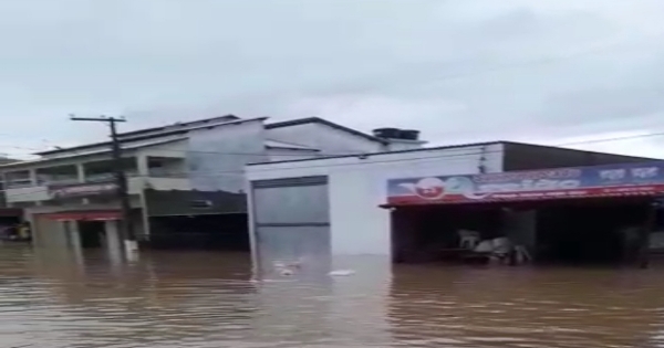 Um vídeo que circula nas redes sociais mostra as águas do Rio de Contas tomando parte da localidade.