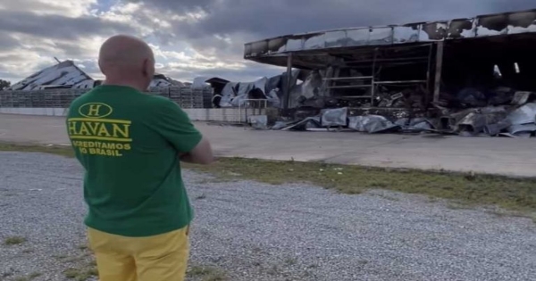 VITÓRIA DA CONQUISTA: Proprietário da Havan Luciano Hang, visita unidade destruída por incêndio.