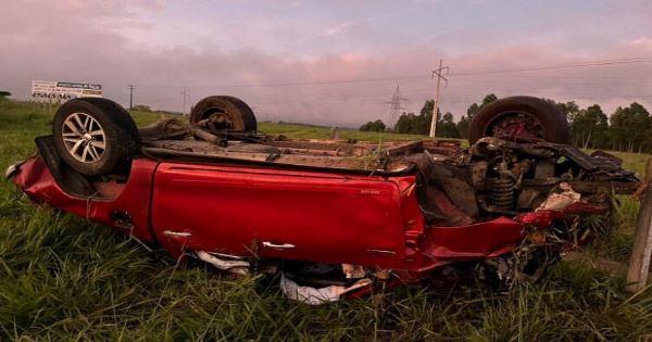 O motorista estava em um veículo modelo “Caminhonete Hilux”, quando perdeu o controle da direção do carro e acabou saindo da pista. O veículo capotou várias vezes.