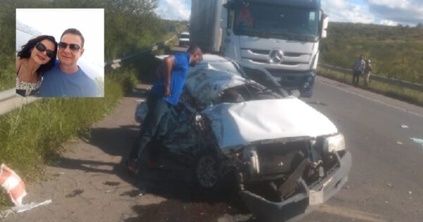 É com enorme pesar que informamos a morte do casal Magnólia do Lago D Emídio, de 54 anos, e Anselmo D Emídio, de 66 anos, da cidade de Poções. Eles sofreram um grave acidente na tarde desta segunda-feira (10), no km 540 da BR-116, próximo a Milagres.