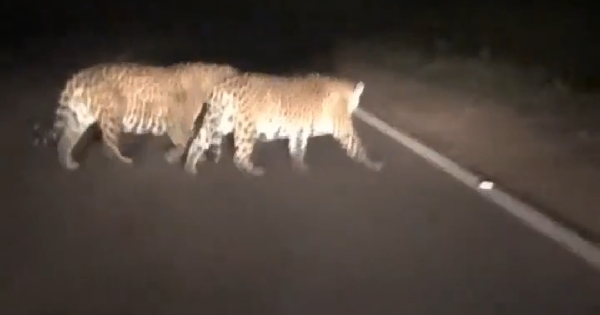 Segundo apuramos, o episódio se trata de mais um fake News. Nas imagens, é possível ver o momento em que os felinos saem da mata em direção a pista. As onças olham para o veículo e seguem caminhando tranquilamente para o outro lado da rodovia. Depois, as duas onças entram no mato. O fato realmente  aconteceu no Pantanal Mato-Grossense, na BR-262 entre os municípios de Cuiabá e Curumbá.Como mostrou essa matéria do G1;https://g1.globo.com/ms/mato-grosso-do-sul/noticia/2023/06/20/video-casal-de-oncas-pintada-e-flagrado-por-grupo-de-amigos-em-rodovia-no-pantanal-de-ms-cena-de-filme.ghtml
