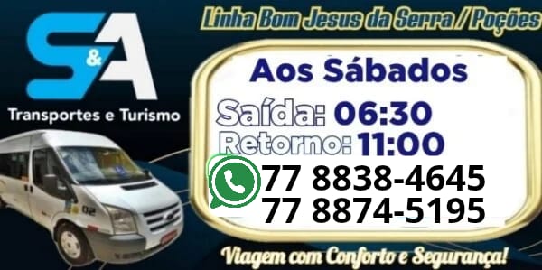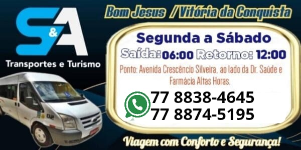 BOM JESUS DA SERRA: S&A Transporte e Turismo,linhas diárias Bom Jesus/Vitória da Conquista e Bom Jesus/Poções; Confira os horários.