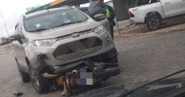 Segundo populares um mototaxista e outro veículo acabaram se chocando frontalmente, na imagem acima podemos observar a moto embaixo do carro.