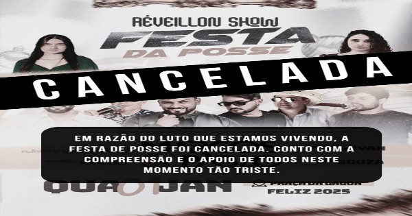 O evento que aconteceria na próxima quarta-feira (01/01),tinha o nome “Réveillon Show Festa da Posse” e contava com a participação de vários artistas locais e regionais foi cancelado.