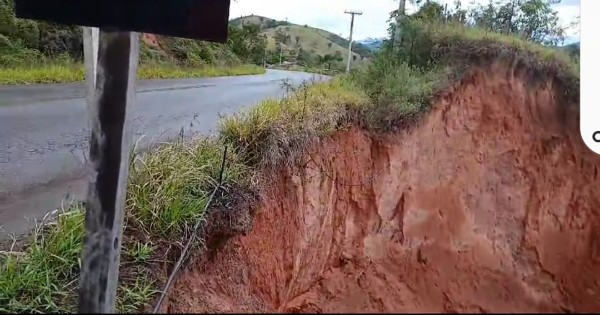 As fortes chuvas que caíram na região nos últimos dias provocaram um deslizamento de terra e formou uma imensa cratera às margens da rodovia.