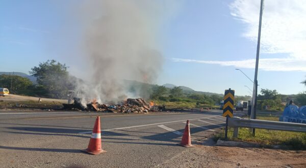 As informações que chegaram a nossa reportagem são de que uma carreta tombou e acabou pegando fogo às margens da BR-116,trecho do Entrocamento de Boa Nova na noite desta segunda-feira (14).