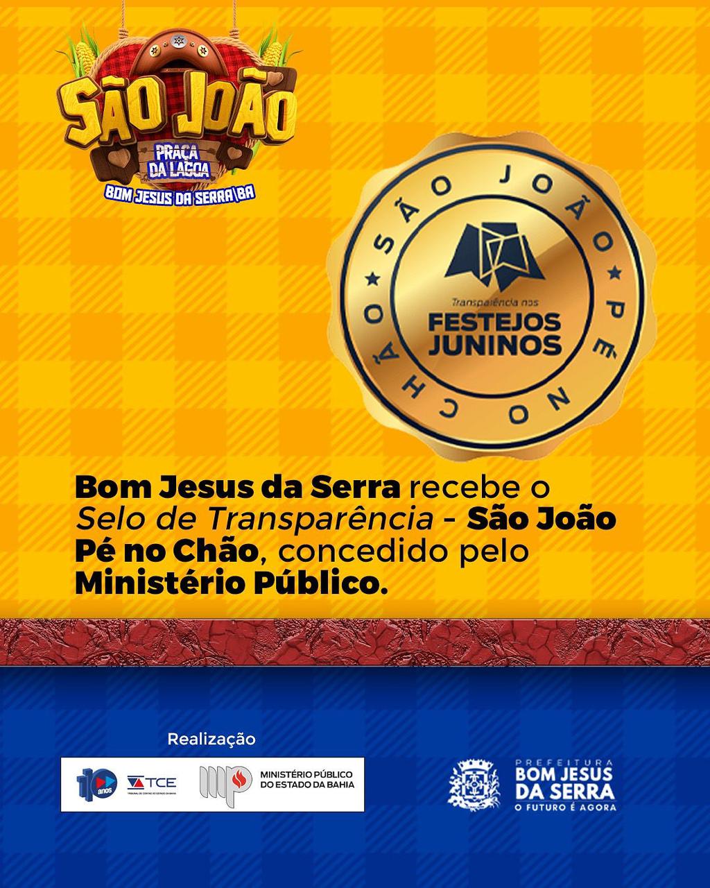 A Prefeitura de Bom Jesus da Serra recebeu na manhã desta terça-feira (10),o Selo de Transparência dos Festejos Juninos de 2025, São João Pé no Chão, concedido pelo Ministério Público. Um reconhecimento importante pelo esforço da gestão em manter tudo claro para a população. Seguindo firme no compromisso com o povo.