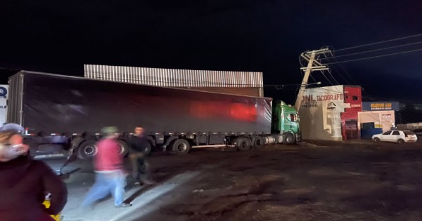 POÇÕES: Carreta sai da pista e se choca em poste às margens da BR-116,parte da cidade ficou sem energia elétrica.