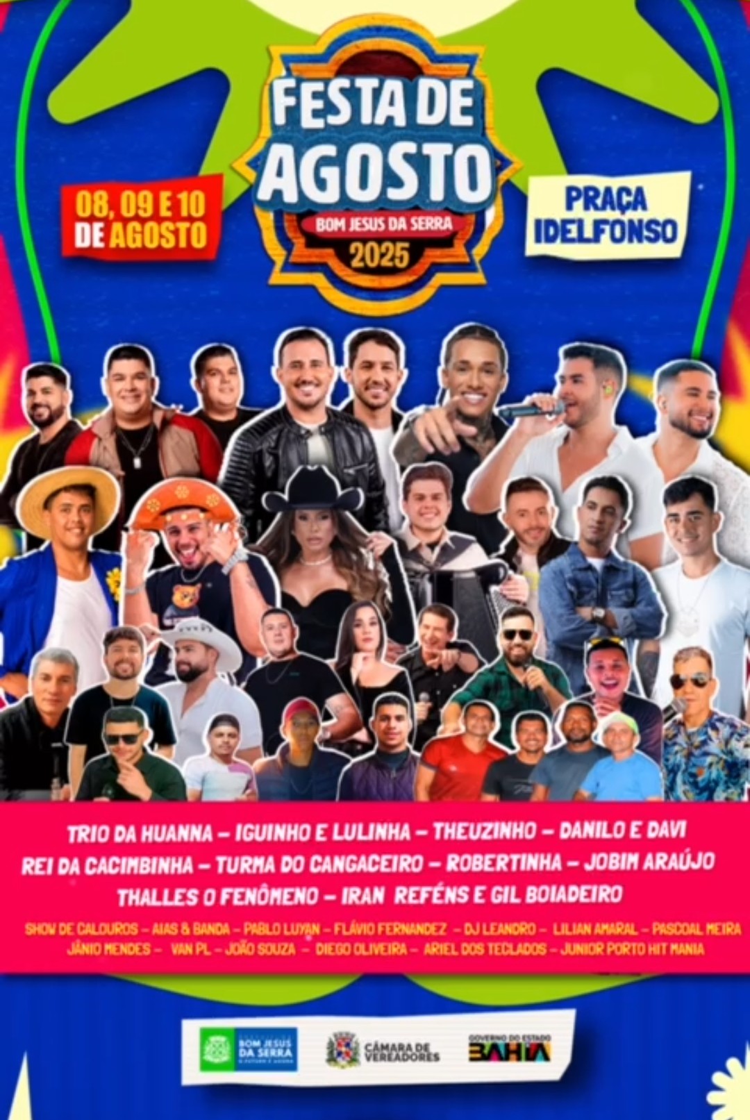 BOM JESUS DA SERRA: Prefeitura divulga o cartaz oficial com as atrações da Festa de Agosto.
