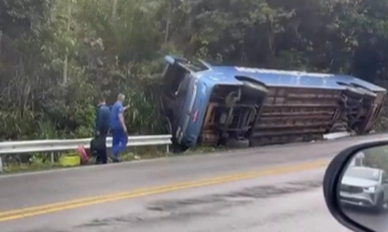 Um ônibus da empresa Águia Branca que fazia a linha Teixeira de Freitas/Salvador, tombou por volta do km 359 da BR-101, nas imediações do município de Wenceslau Guimarães no Sul da Bahia.