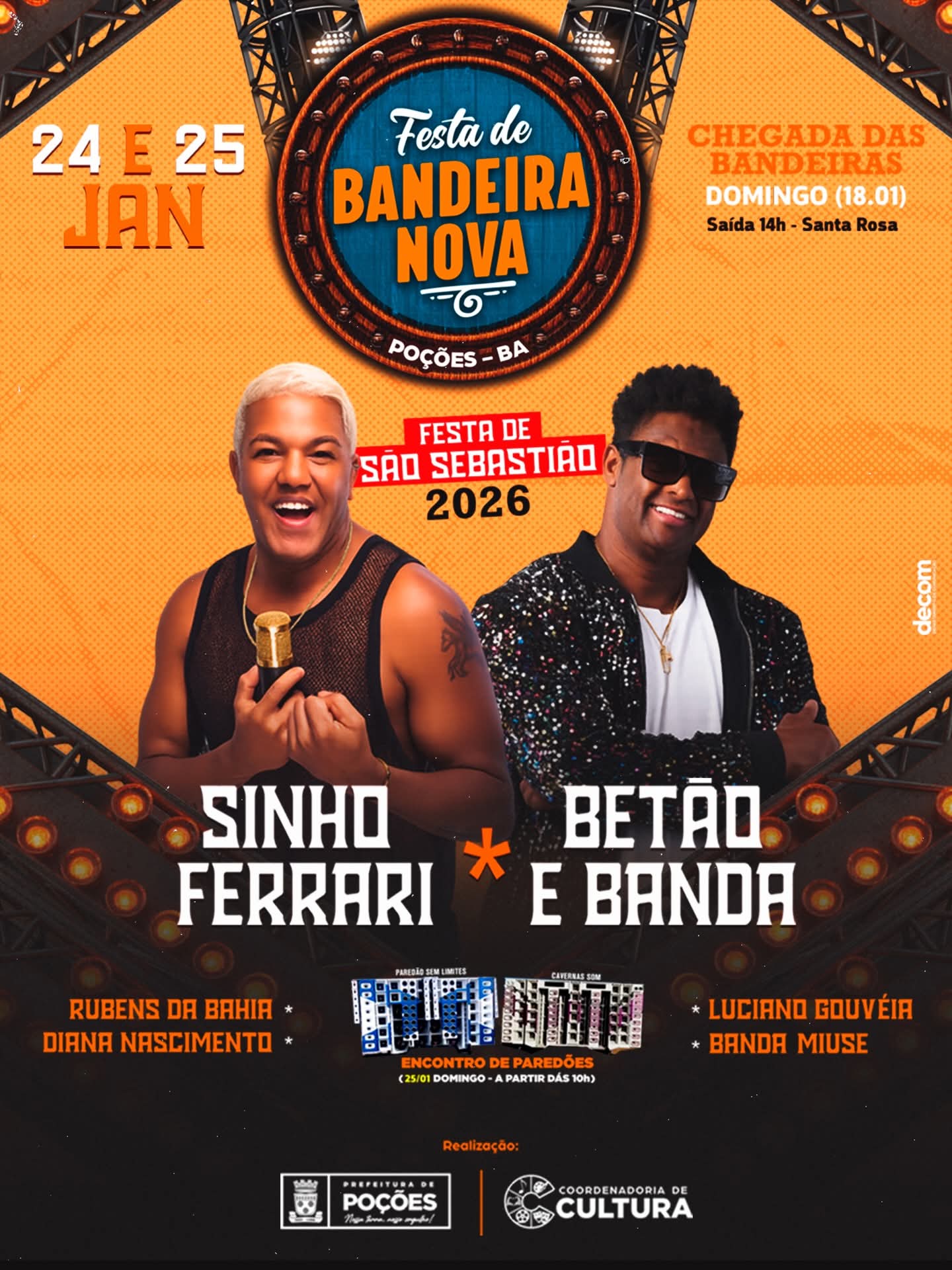 POÇÕES: Prefeitura divulga cartaz oficial com as atrações da Festa de Bandeira Nova.