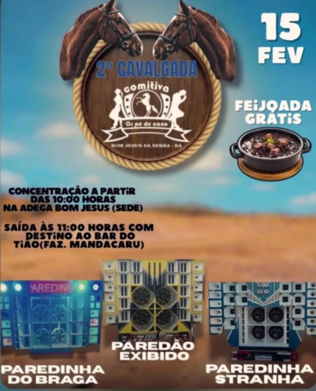 BOM JESUS DA SERRA: 2ª Cavalgada da Comitiva Os pé de Cana acontece neste domingo (15), na região do Mandacaru.