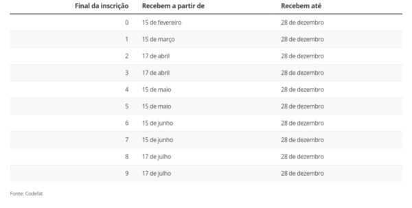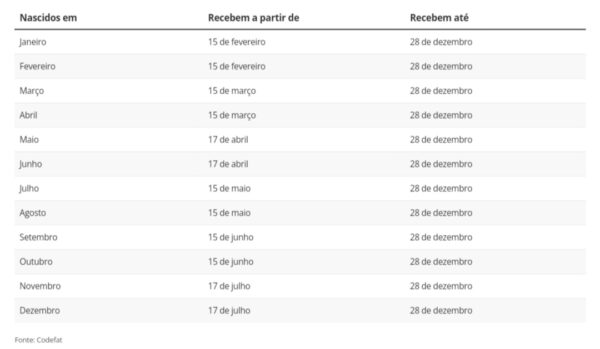 Os pagamentos começam no dia 15 de fevereiro. Os beneficiários podem sacar o dinheiro até o dia 28 de dezembro.