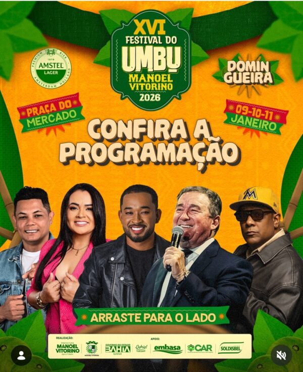 MANOEL VITORINO: Confira a Programação com Datas e Horários das atrações do Festival do Umbu 2026.